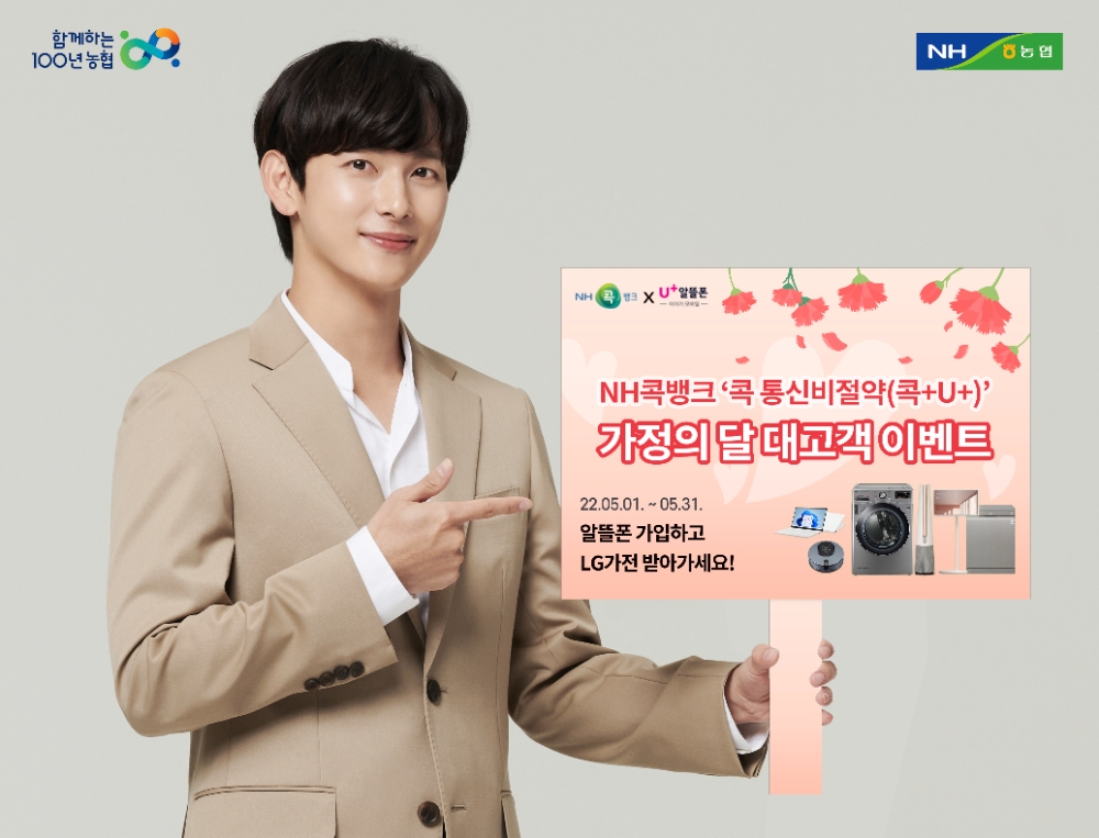 오는 31일까지 NH콕뱅크의 '콕통신비절약'에서 콕뱅크 전용 요금제 3종 중 하나에 새로 가입하는 고객 중 총 100명을 추첨해 ▲건조기(1명) ▲무선스크린(1명) ▲노트북(1명)을 비롯한 가전제품과 ▲홍삼세트 ▲치킨 쿠폰 ▲커피 쿠폰 등을 증정할 예정이다.