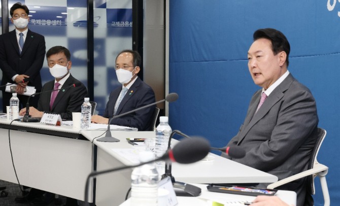 한편, 이날 회의는 추경호 경제부총리 겸 기획재정부 장관을 비롯해 이창용 한국은행 총재, 최상목 경제수석과 최재영 국제금융센터 원장, 박석길 JP Morgan 이코노미스트, 김경민 서울대 환경대학원 교수, 최석원 SK증권 지식서비스 부문 센터장, 서철수 미래에셋증권 리서치센터장, 조동철 KDI 정책대학원 교수, 안동현 서울대 경제학부 교수 등 민간·시장 전문가들이 참석해 글로벌 경제·금융시장 상황과 선제적 대응 방안 등을 논의했다.
