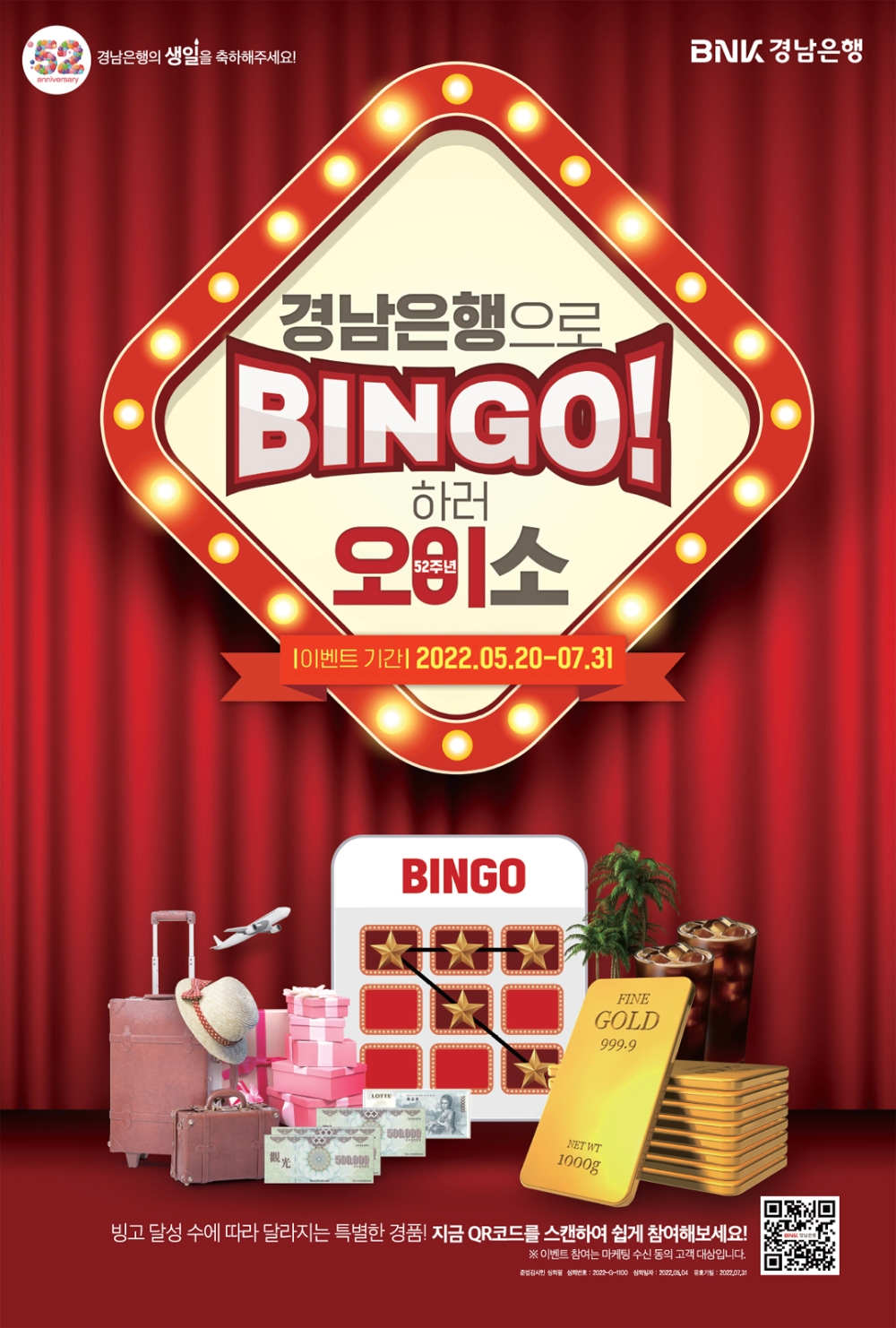 창립 52주년을 맞은 BNK경남은행(은행장 최홍영)은 오는 7월31일까지 '경남은행으로 빙고하러 오이소'를 진행한다.