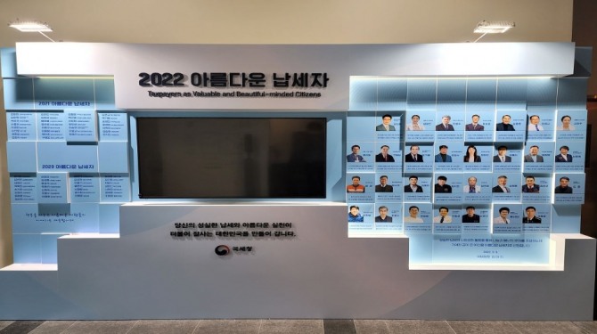 이미지 확대보기국세청은 19일 세종 국립조세박물관에 2022년 '아름다운 납세자'상 수상자 소개 홍보관을 설치하고 제막식을 했다고 밝혔다.