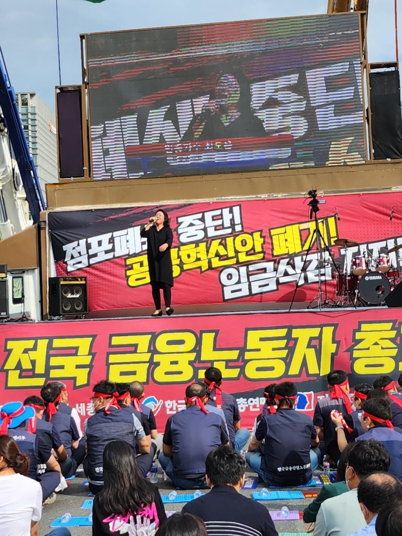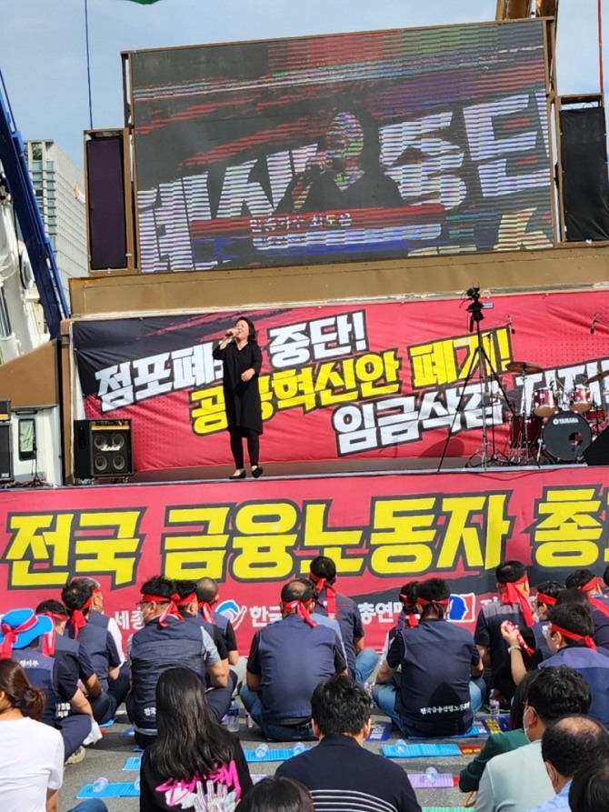 16일 서울 광화문 세종대로 일대에서 전국금융산업노동조합이 총파업 집회를 진행하고 있다. [사진=이종은 기자]