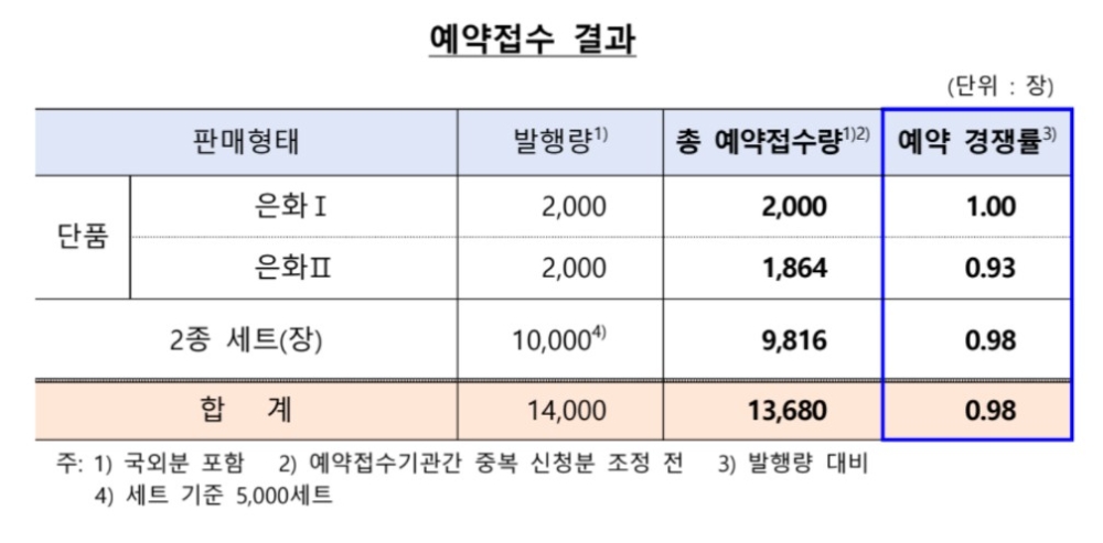 이미지 확대보기앞서 기념주화는 지난 1일부터 16일까지 우리·농협은행 및 한국조폐공사의 온라인 쇼핑몰을 통해 예약 신청 받았다.