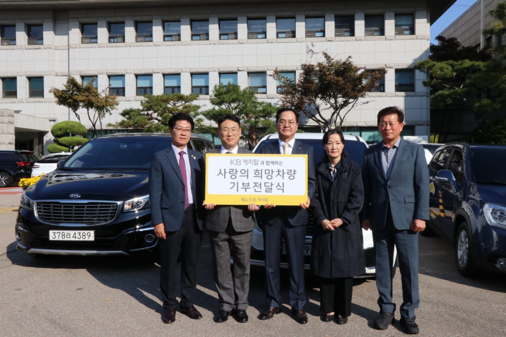 KB캐피탈은 중고차 거래 플랫폼 'KB차차차'에서 KB진단 중고차 매물 중 봉사 활동 쓰임새에 맞는 적합 차량으로 기아 카니발 2대, 기아 모닝 2대, 쉐보레 올란도 1대 등 총 5대 차량을 선별해 기부했다. 해당 차량은 저소득 가정 대상 아동 돌봄 지원, 취약 계층 일자리 지원 등 다양한 사회 복지 사업을 하는데 활용된다.