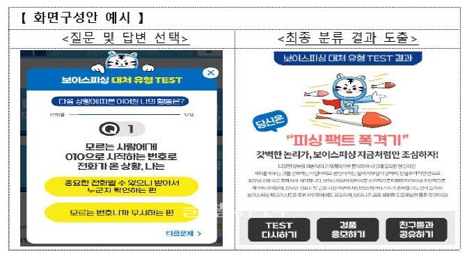 보이스피싱 대처유형 테스트인 'MVTI'를 통해 자신의 성격 유형도 확인가능하다.