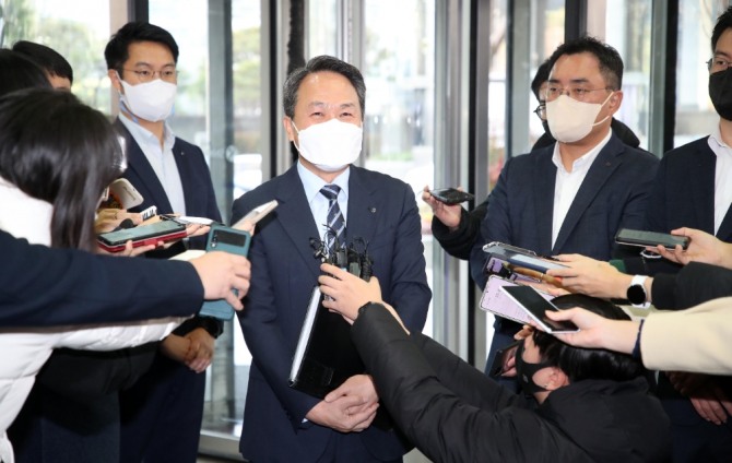 조 회장은 이날 면접장에 입장하면서 기자들에게 "사장이 16명까지 늘어날 만큼 조직이 커졌기 때문에 변화해야 한다"며 변화를 강조했는 데 결국 면접 과정에서 스스로 사퇴 의사를 밝힌 것으로 전해졌다.