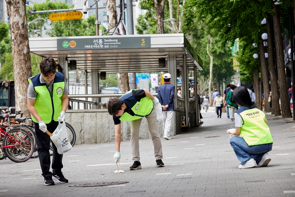 이미지 확대보기임직원과 함께하는 선릉역 플로깅 행사는 애큐온저축은행의 창립기념일과 선릉역 역명이 애큐온저축은행역으로 병기된 지 1주년을 앞두고 깨끗한 선릉역을 시민들에게 제공한다는 취지로 마련됐다.