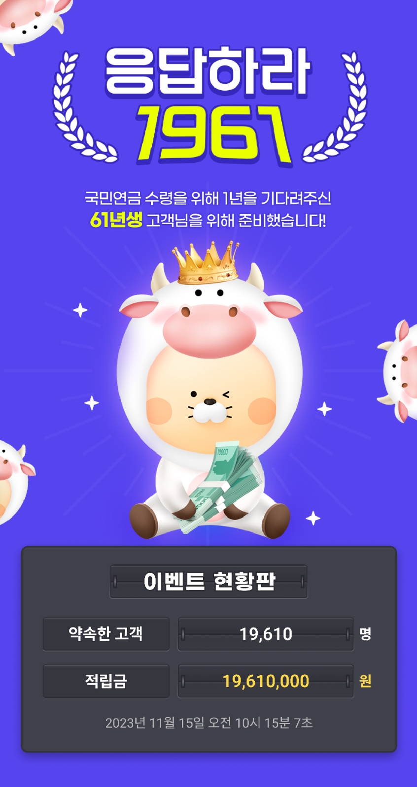 ◇“1961년생, 신한은행 계좌로 국민연금 받으면 최대 1961만원 드려요”