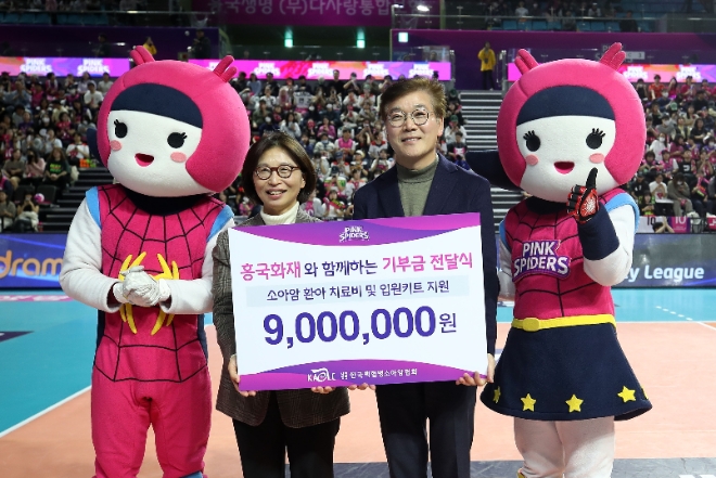 이미지 확대보기이번 기부금은 지난 17일 열린 경기 때 진행된 ‘사랑의 서브기부’ 이벤트를 통해 모금되었다. 흥국생명 선수가 경기 중에 서브에이스를 기록하면 서브에이스 1개당 100만 원씩 적립하고, 흥국화재 임규준 사장을 비롯한 임직원 및 흥국생명 배구단 핑크스파이더스 팬들이 서브에 성공하면 50만 원씩 기부하는 방식으로 진행됐다.