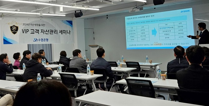 이미지 확대보기Sh수협은행이 지난 29일 'Sh수퍼골드클럽' 우수고객을 대상으로 '2024년 금융시장 전망과 자산관리 세미나'를 개최했다.