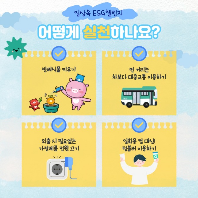 '우리가 GREEN 정원, 함께 어부바해요'로 명명된 이번 캠페인은 이달 15일까지 진행된다. 일상에서 쉽고 지속적으로 ESG 실천을 실행하자는 취지의 범국민 릴레이 캠페인으로, 대한민국 국민이라면 누구나 참여할 수 있다.