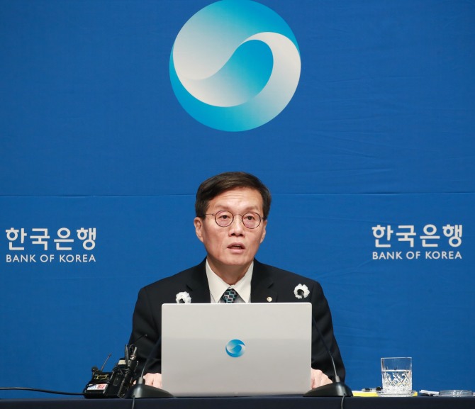 이 총재는 "(향후 3개월 뒤 최종금리에 대해) 저를 제외한 금통위원 5명 모두가 현재 우리가 보고 있는 전망 경로에 변화가 없다면 기준금리 연 3.5%를 유지해야 한다고 했다"면서 “(지난해 11월 회의에선) 4명이 연 3.75%까지 열어두자고 했고, 2명은 연 3.5%를 유지해야 한다고 했지만, 이번엔 5명 모두가 현 수준을 유지해야 한다고 했다”고 말했다.