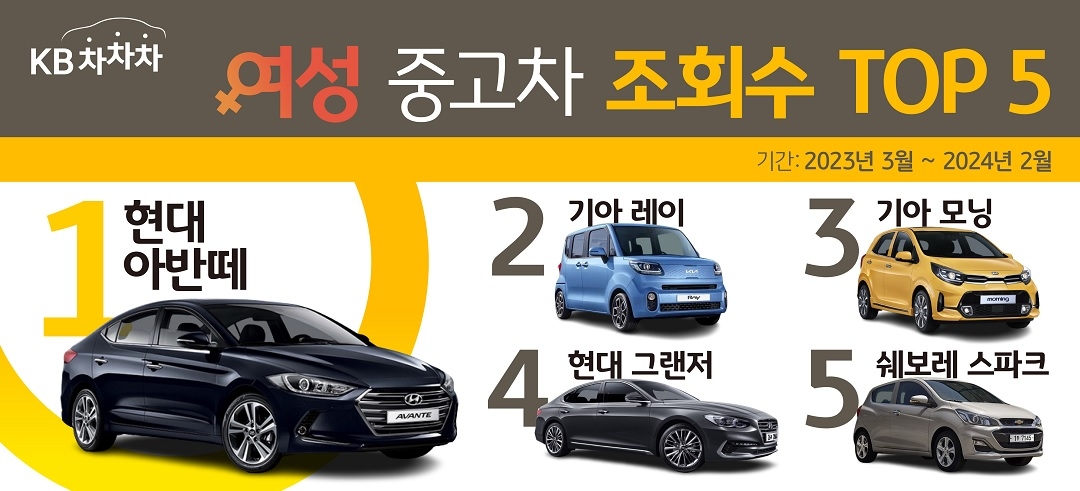 이미지 확대보기이번 분석은 KB차차차의 데이터를 바탕으로 작년 3월부터 올해 2월까지 1년간 KB차차차에서 여성 회원이 조회한 매물 데이터를 분석해 순위를 산출했다.