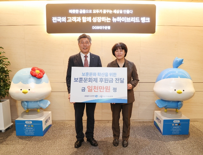 DGB대구은행은 국가유공자의 희생과 헌신을 기리고 보답하고자 매년 사회공헌활동의 일환으로 다양한 보훈 관련 지원을 진행해 보훈 어르신 나들이 사업 후원, 생필품 및 지원 사업, 집수리 사업 후원 등 국가유공자와 보훈가족을 위한 사업을 지속적으로 추진하고 있다.