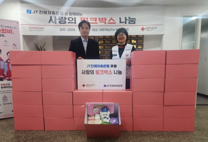 핑크박스에는 청소년 한 명당 5개월간 사용할 수 있는 여성 위생용품이 담기며, JT친애저축은행 임직원이 직접 작성한 손 편지도 함께 전달된다.