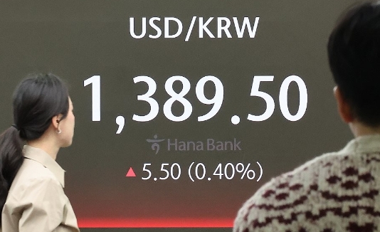 이미지 확대보기서울외국환중개에 따르면 16일 환율은 5.9원 오른 1389.9원에 개장한 후, 오전 11시32분 기준 1400.0원까지 상승했다.