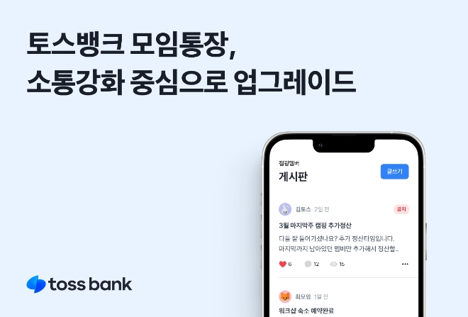 이미지 확대보기가장 먼저 토스뱅크는 기존 커플통장에서만 제공했던 거래내역 내 댓글, 사진 설정기능 등을 모든 모임통장 대상으로 확대했다.