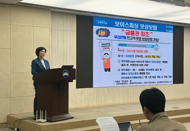 이미지 확대보기우리은행은 2일 '보이스피싱 예방법'을 주제로 기자간담회를 열고 이같이 밝혔다.