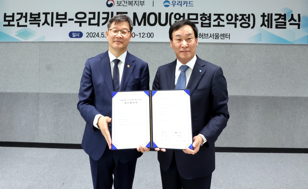 이미지 확대보기이번 행사는 이달 2일 서울 중구 소재 시티타워 비즈허브서울센터에서 이기일 보건복지부 제1차관 및 박완식 우리카드 대표, 4개 시도 국장 등이 참석해 진행했다.