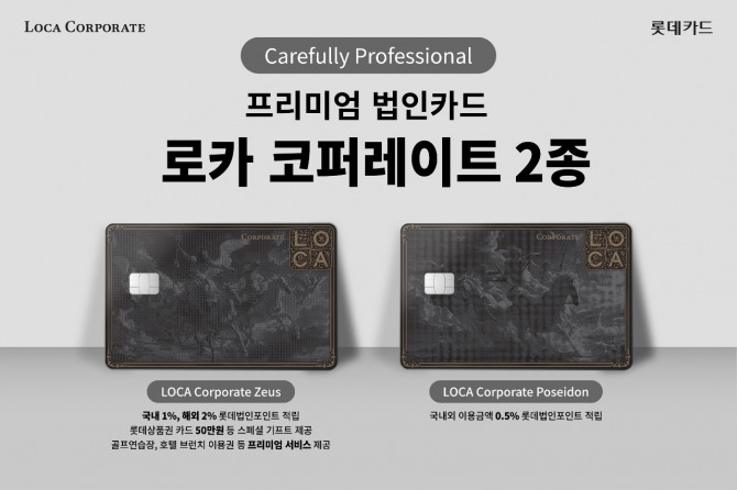 롯데카드는 이번 신규 법인 BI 론칭과 함께 이를 적용한 프리미엄 법인카드 상품인 ‘로카 코퍼레이트 제우스(LOCA Corporate Zeus)’ 카드와 ‘로카 코퍼레이트 포세이돈(LOCA Corporate Poseidon)’ 카드를 선보였다.