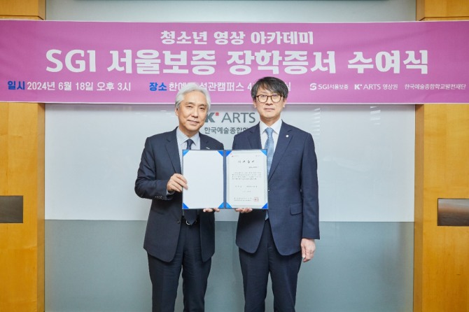이미지 확대보기이번 기부금은 SGI서울보증과 한국예술종합학교가 함께하는 ‘K-ARTS 청소년 영상 아카데미’ 운영과 한국예술종합학교 영상원 학생을 위한 장학금, 문화·예술분야의 진로를 희망하는 청소년들을 위한 문화예술 교육 등에 사용될 예정이다.