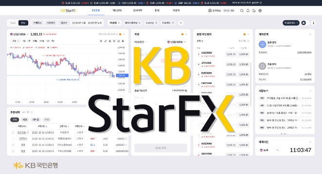 이미지 확대보기KB Star FX는 실시간 시장 환율 기반으로 환전, 현·선물환, 시장평균환율(MAR), 외환스왑 거래 및 결제와 함께 전문가의 환율 예측과 기술적 분석 등 차별화된 외환 콘텐츠를 제공하는 종합 외환매매 플랫폼이다. KB국민은행 웹 페이지에서 무료로 이용할 수 있다.
