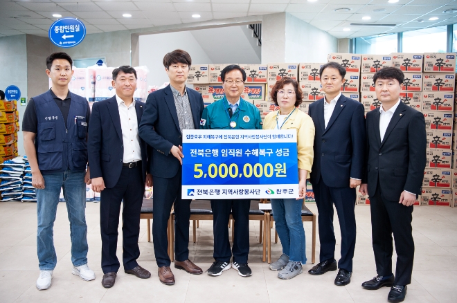 지난 15일 호우 피해 특별재난지역으로 선포된 완주군에 전달되는 특별성금 500만원은 지역상황에 맞게 실의에 빠진 수재민들을 위한 실질적인 구호활동과 무더위 속 빠른 일상회복을 돕기 위해 사용될 예정이다.