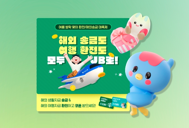 전북은행 관계자는 "여름방학을 맞이해 해외유학생과 해외체재자 및 해외여행 고객의 송금·환전 수요가 늘어남에 따라 소소한 기쁨을 드리고자 이번 이벤트를 기획했다"며 "앞으로도 다양한 혜택과 고객 만족 서비스를 제공하기 위해 지속적으로 노력하겠다"고 밝혔다.