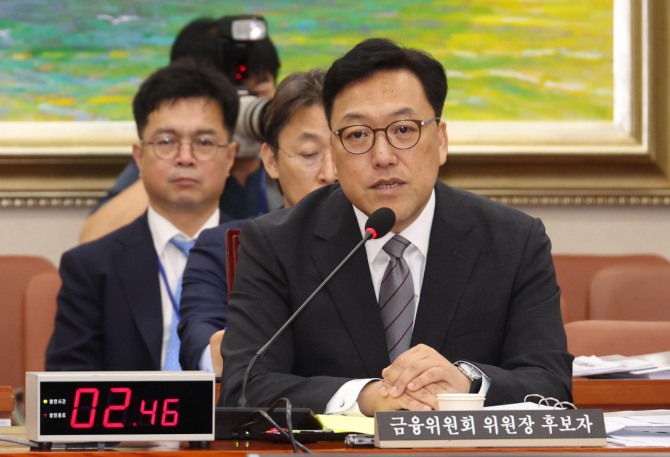 김병환 금융위원장 후보자가 지난 22일 서울 여의도 국회 정무위원회에서 열린 인사청문회에서 의원들의 질의에 답변하고 있다. 사진=뉴시스