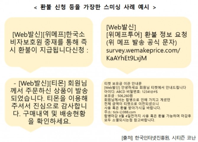 환불 지급 관련 스미싱 시도 발견…당국, 사용자 주의 당부
