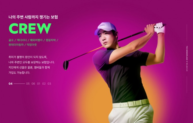 이미지 확대보기지난해 출시된 ‘CREW 골프보험’은 홀인원 비용과 배상책임 등 골프보험의 기본 보장 이외에도, 교통사고 대인 벌금과 형사합의금 등 운전자보장까지 한 데 묶은 ‘종합 골프보험’이다.