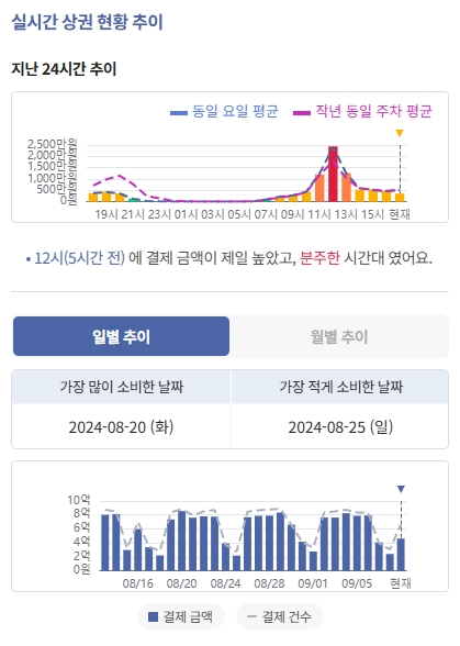 실시간 상권 정보 서비스는 서울 열린데이터 광장의 '서울 실시간 도시데이터'에서 확인할 수 있다. 신한카드는 API를 무료로 개방하고, 민간 기업 및 개발자 등 누구나 자유롭게 접근할 수 있도록 지원한다는 방침이다.