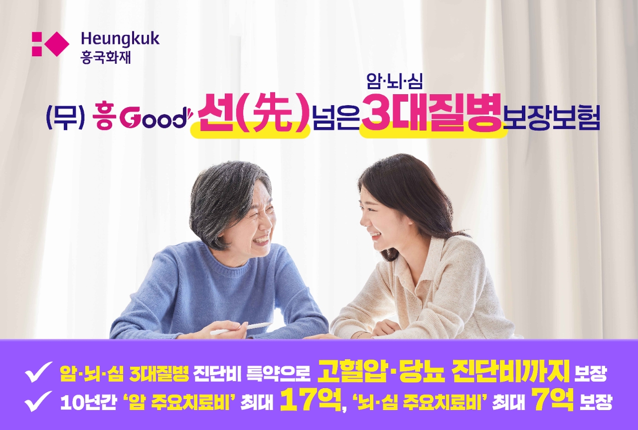 흥국화재 관계자는 "암·뇌·심 3대 질병 보장 특약에 가입하면 고혈압·당뇨·부정맥 등 경증질환까지 함께 보장받을 수 있다"며 "암 따로, 뇌·심장 따로, 고혈압 따로, 당뇨 따로 가입할 때보다 보험료를 아낄 수 있다"고 밀했다.