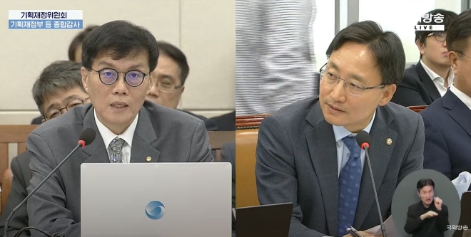 이미지 확대보기이 총재는 29일 서울 여의도 국회에서 열린 기획재정위원회 종합 국정감사에서 '하반기 들어 수출 감소가 현실화한다면 전망치 조정도 불가피할 것으로 보인다'는 임광현 더불어민주당 의원 지적에 대해 이같이 답했다.