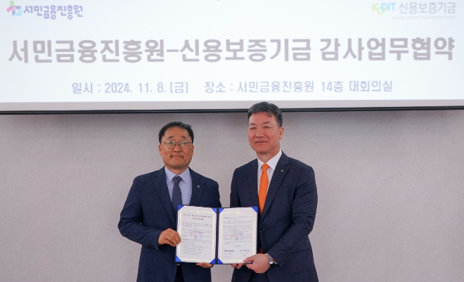 이미지 확대보기11일 금융권에 따르면 신보는 지난 8일 서울 중구 서민금융진흥원 본사에서 ‘감사 전문성 제고 및 내부통제 역량 강화를 위한 업무협약’을 맺었다.