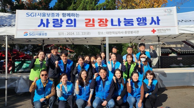 이미지 확대보기SGI서울보증 임직원 봉사단 SGI 드림파트너스 단원 20여 명이 직접 만든 김장 김치와 간단한 반찬을 종로구 내 경로당과 취약계층 약 250가구에 전달했다.