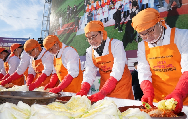 이미지 확대보기3일 경남은행에 따르면 예 행장은 행정안전부 주관, 울산광역시 주최 ‘2024 국민통합 김장행사’에 이같이 동참했다.