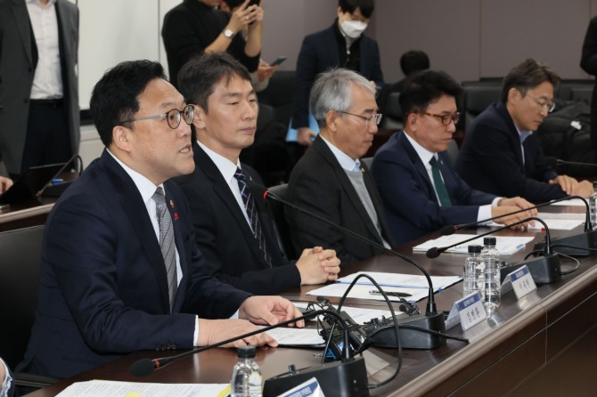 이날 회의에는 이복현 금융감독원장, 조용병 은행연합회장, 서유석 금융투자협회장, 강석훈 산업은행 회장, 김성태 기업은행장, 최원목 신용보증기금 이사장, 정은보 한국거래소 이사장 등이 참석했다.