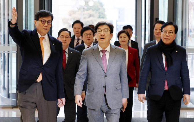 정치권의 깜짝 한은 방문은 12.3 비상계엄 사태 이후 끊이지 않고 있다. 비상계엄 사태 직후인 지난해 12월 10일에는 더불어민주당·조국혁신당·개혁신당 등 야권 3당 의원들은 한은을 찾아 경제상황을 긴급 점검했고 이어 같은달 19일에는 헌정 사상 처음으로 우원식 국회의장이 현직 국회의장으로는 처음으로 한은을 찾았다.
