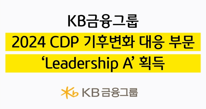 이미지 확대보기KB금융은 CDP ‘2024년 기후변화 대응부문’ 평가에서 ‘리더십 A’를 획득했다고 6일 밝혔다.
