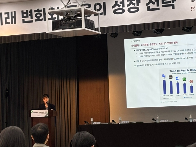 이미지 확대보기백연주 한국금융연구원 부연구원은 27일 서울 중구 은행연합회관에서 열린 ‘미래 변화와 금융의 성장 전략’ 세미나에서 이같이 밝혔다.