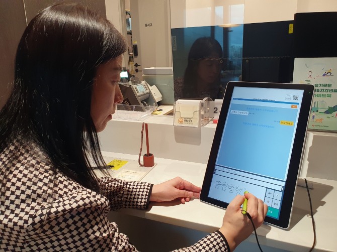이미지 확대보기한화생명은 대형 생보사 최초로 전국의 고객센터에서 태블릿 채팅 서비스를 제공한다. 고령으로 인한 청력약화 혹은 청각장애 등의 이유로 원활한 의사소통에 불편함이 있는 고객은 고객센터 방문 시 태블릿에 전자펜으로 문자를 적어 본인의 의사를 상담사에게 명확히 전달할 수 있게 됐다.