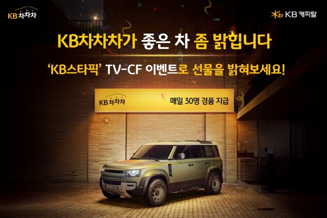 이미지 확대보기KB캐피탈의 신규 TV 광고 캠페인 "KB차차차가 좋은 차 좀 밝힙니다"와 연계한 이번 이벤트는 4월 11일부터 한 달간 진행된다. 이벤트 기간동안 KB차차차 앱에 로그인한 고객이라면 누구나 참여할 수 있다.