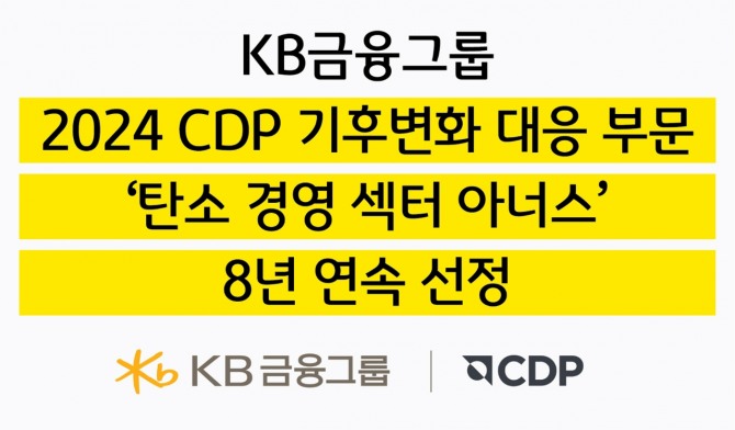 앞서 KB금융은 2024 CDP 기후변화 대응 부문 평가에서도 최상위 등급인 ‘리더십 A’를 받았다. 기후변화 대응을 위한 지배구조 체계, 경영전략 수립, 탄소 감축 목표 및 성과를 인정받은 것으로 전해진다.