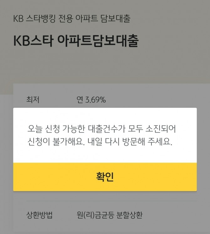 이미지 확대보기주택담보대출(주담대) 금리가 상대적으로 낮은 은행은 일일 비대면 접수를 받자 마자 동나고 있다. 또 주택 구입 계획이 있는 차주들은 주담대 신청 전 미리 신용대출을 받아 자금 여력을 확보하고 있다.