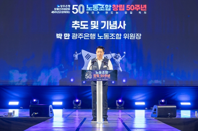 이미지 확대보기22일 광주은행에 따르면 지난 16일 광주여대에서 열린 기념식에 박만 노조위원장을 비롯해 박홍배 더불어민주당 국회의원, 민형배 민주당 의원, 김동명 한국노조총연맹 위원장, 김형선 전국금융산업노조 위원장 등이 참석했다.