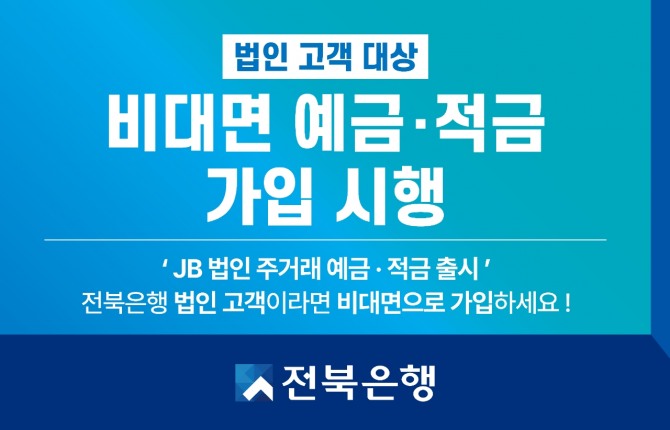 이미지 확대보기전북은행은 비대면 채널 개설을 통해 영업점 방문을 통해 상품을 가입해야 했던 법인고객도 비대면으로 계좌개설이 가능해졌다. 비대면 채널 개설과 함께 JB법인 주거래 예·적금 상품도 출시했다.