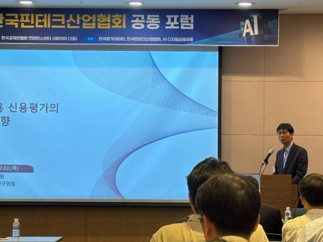 이미지 확대보기김영도 금융연구원 선임연구위원은 3일 서울 여의도 한국경제인협회에서 열린 ‘코데이터(KODATA)-한국핀테크산업협회 공동 포럼’에서 이같이 밝혔다.
