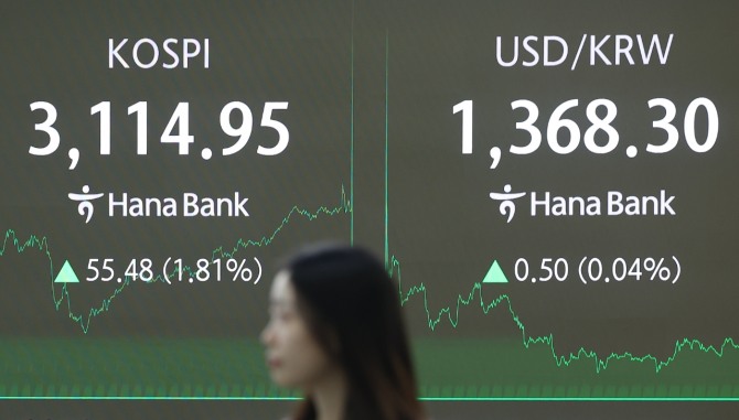 한국거래소 기준 이날 코스피는 전거래일(3059.47)보다 55.48포인트(1.81%) 오른 3114.95로 거래를 마쳤다.
