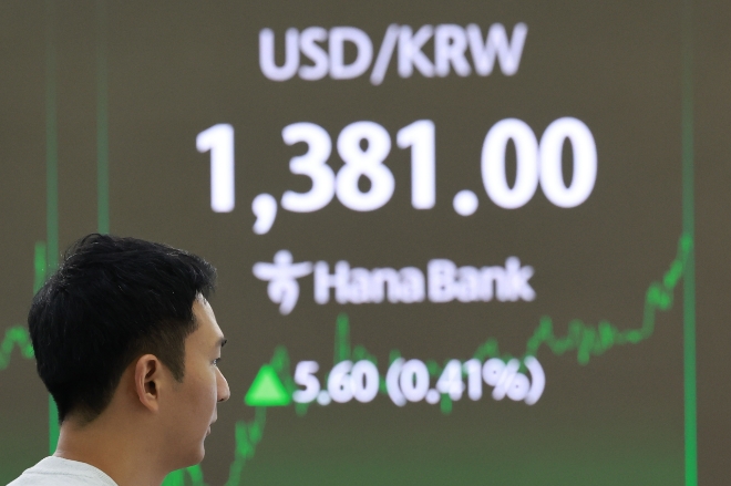 이날 환율은 오후 들어 상승 폭을 키웠다. 환율이 종가 기준 1380원대를 기록한 것은 지난달 23일(1384.3원) 이후 처음이다.