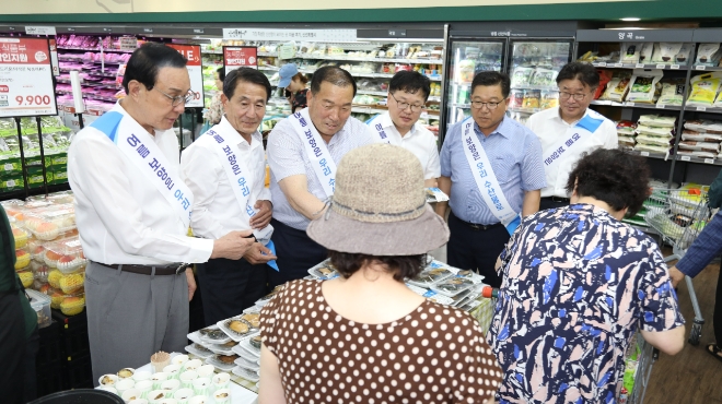 노 회장은 완도소안·완도금일·해남군수협의 조합장들과 곽용구 GS리테일 수퍼사업부 대표와 함께 매장을 찾은 시민들에게 전복을 무료로 증정하며 소비에 참여해 줄 것을 요청했다.